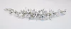 Tiara de strass, perlas blancas, cristales transparentes y florcitas de alpaca blancas. Medidas: 30 x 1,5 cm